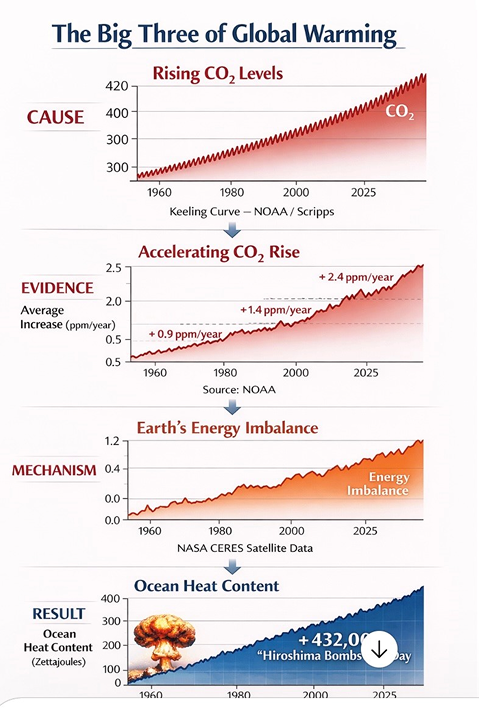 The latter is the cause of all the destructive parts of global warming. Since nothing is being currently done to stop the big three. our children and grandchildren will be in great danger.